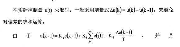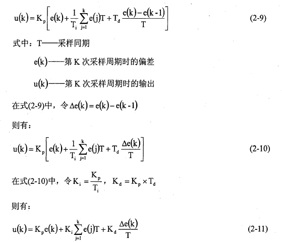 如果控制系統(tǒng)的硬件設(shè)計(jì)以微處理器為核心,那么該控制系統(tǒng)就是時(shí)間離散的控制系統(tǒng),它以采樣頻率對(duì)輸入和輸出量進(jìn)行實(shí)時(shí)采樣,所以PID控制器采用差分方程表示: